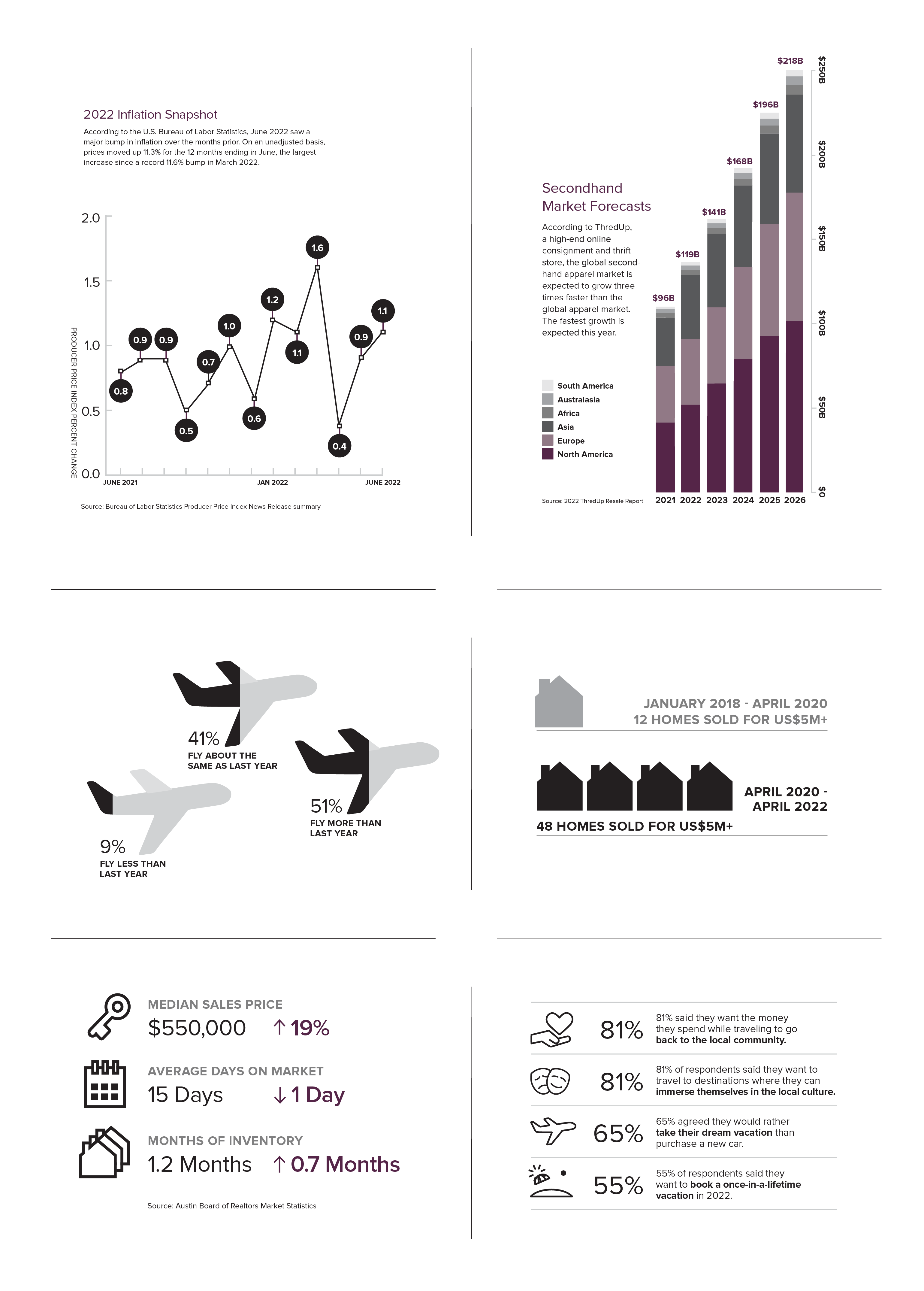 Expanding on the very established look and feel of brands like Sotheby’s & Berkshire Hathaway, multiple annual publications were developed. Intricate yet engaging infographics were designed to convey the, sometimes, complicated information in a quick and comprehendible way.